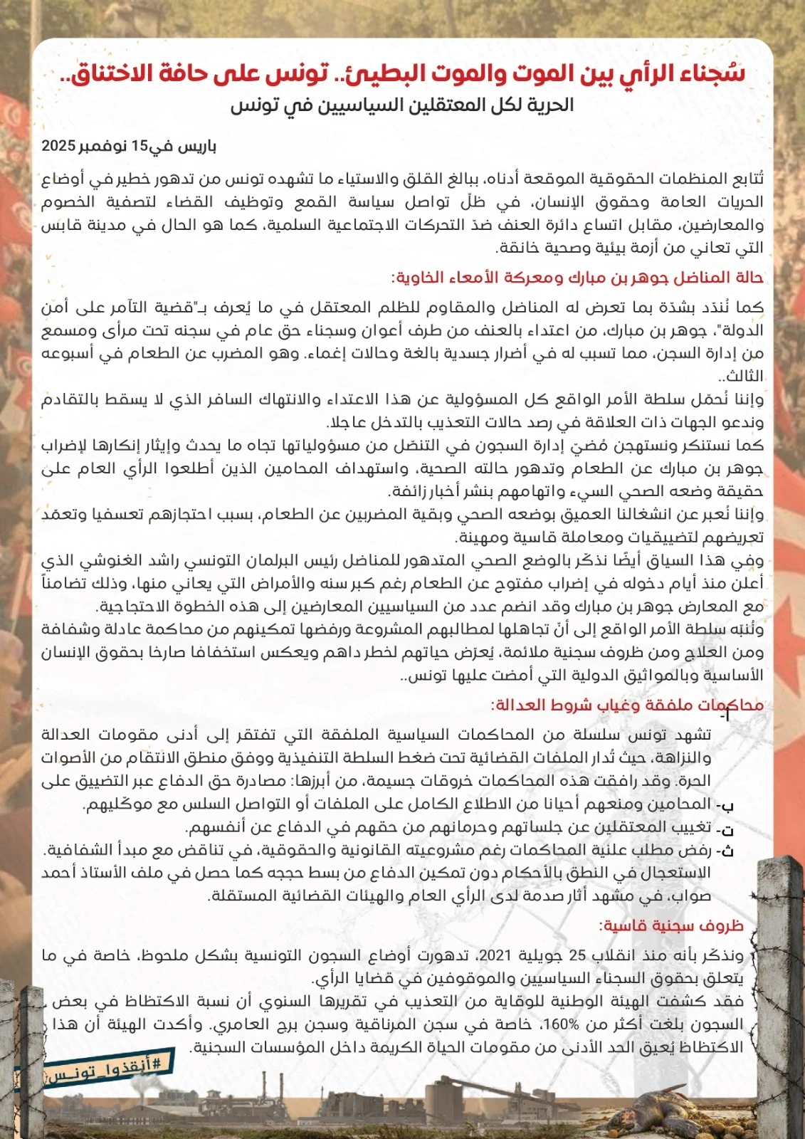 The prosecution charged Al-Shishtawy with "joining a group established in violation of the law and spreading false news," following a post he made on Facebook calling for support for an Egyptian lawyer who was assaulted by one of the guards at the Grand Mosque in Saudi Arabia, as part of professional and humanitarian solidarity.